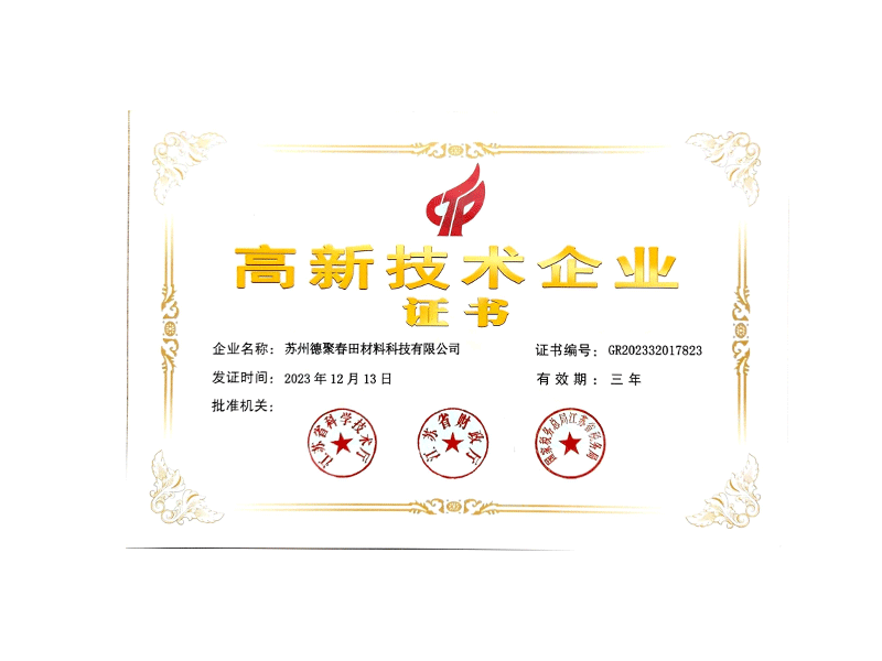 High tech enterprise certificate