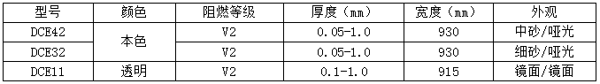 DCE42/32系列为本色磨砂聚碳酸酯薄膜,DCE11系列为透明聚碳酸酯薄膜,该系列薄膜具有耐